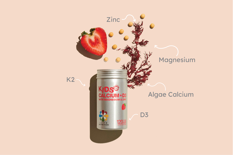 Life Nutrition Kids Calcium + D3 is an easily absorbed plant based calcium supplement that provides calcium for your kids bones all in one tasty chewable tablet.